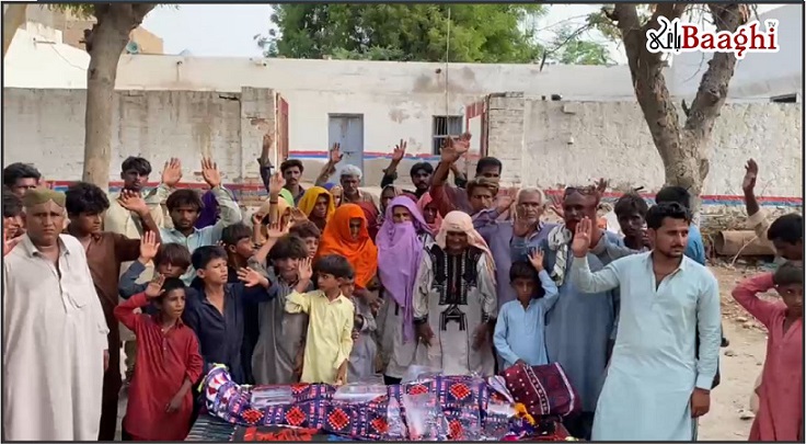 مظاہرین نے الزام لگایا کہ گزشتہ رات دو بجے پولیس اہلکار بغیر لیڈی پولیس کے ہمارے گھروں میں داخل ہوئے، جہاں بزرگوں نے جب مال مویشی لے جانے سے روکا تو اہلکاروں نے خواتین اور بزرگوں کو شدید تشدد کا نشانہ بنایا۔ مظاہرین کے مطابق پولیس تشدد سے 70 سالہ جھنگل خان موقع پر ہی جاں بحق ہو گیا، جس کی لاش لے کر احتجاج کیا جا رہا ہے۔