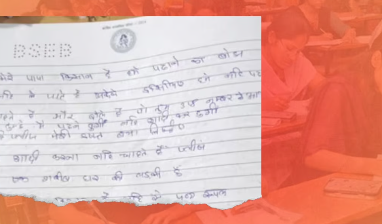 میٹرک کے امتحان میں ایک طالبہ نے اپنے پرچے میں لکھا کہ مجھے پاس کر دیں ورنہ والد میری شادی کر دیں گے واقعہ بہار کا ہے جہاں ابھی چند