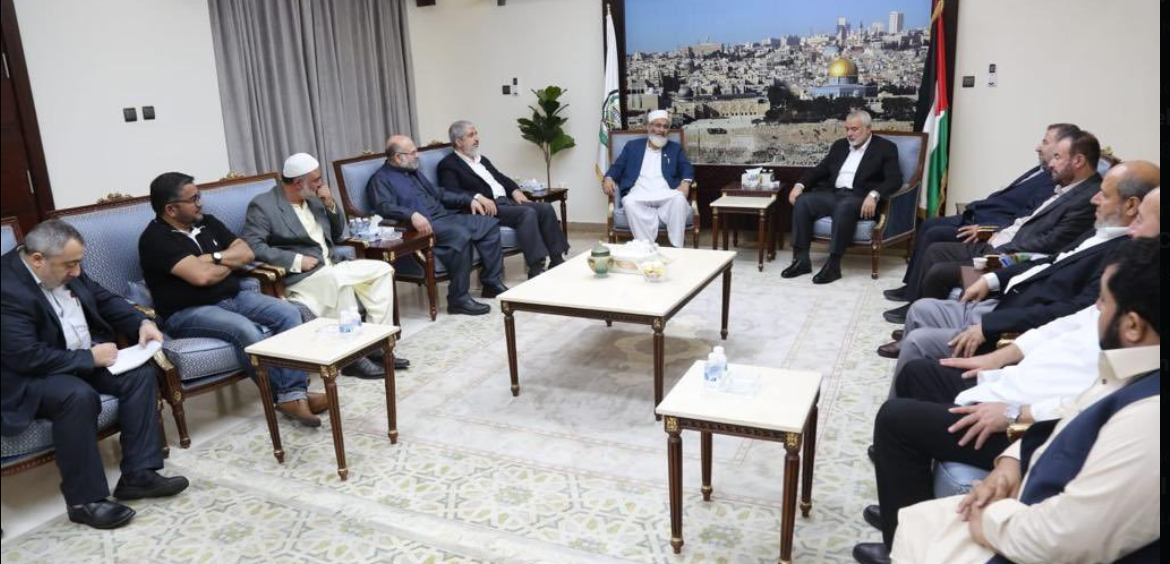 امیر جماعت اسلامی سراج الحق بھی قطر کے دورے پر پہنچے جہاں سراج الحق نے دوحہ میں حماس کے سربراہ اسماعیل ہانیہ سے ملاقات کی اور فلسطین کے ایشو پر