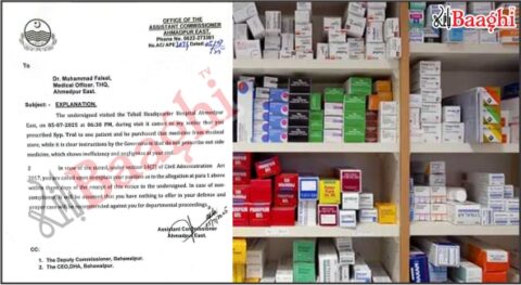 بہاولپور پنجاب: سرکاری ہسپتالوں میں باہر کی دوا لکھنے پر پابندی، پہلا شوکاز نوٹس جاری اوچ شریف (باغی ٹی وی،نامہ نگارحبیب خان)پنجاب حکومت نے سرکاری ہسپتالوں کے ڈاکٹروں کو ہدایت کی ہے کہ وہ مریضوں کو ہسپتال کے باہر سے دوا خریدنے پر مجبور نہڈاکٹرغلام مصطفی بڈانی5 مہینے قبلپڑھتے رہیں