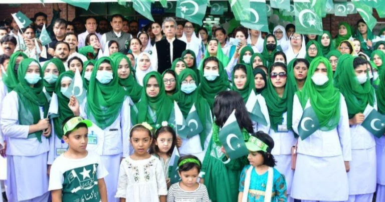 جشن آزادی پر سروسز چیفس فیلڈ مارشل جنرل عاصم منیر ، ایئر چیف مارشل ظہیر احمد بابر ، چیف آف دی نیول اسٹاف ایڈمرل نوید اشرف اور چیئرمین جوائنٹ چیفس