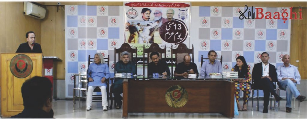 خاور نعیم ہاشمی نے جنرل ضیاء الحق کے دور کی یادیں تازہ کرتے ہوئے کہا کہ اس وقت صحافیوں کو دانستہ طور پر تقسیم کیا گیا تاکہ آزادیٔ صحافت کو کچلا جا سکے، لیکن آج صحافی پی ایف یو جے کے تحت متحد ہیں اور ہمیں اس اتحاد کو مزید مضبوط بنا کر آئینی حقوق کے تحفظ کی تحریک کو آگے بڑھانا ہوگا۔
