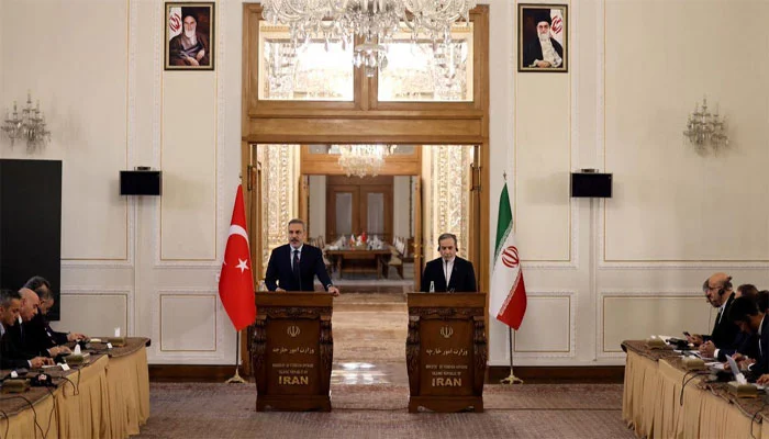 ترک وزیرِ خارجہ حاقان فیدان جو اس وقت دورۂ ایران پر موجود ہیں، انہوں نے تہران میں اپنے ایرانی ہم منصب عباس عراقچی کے ساتھ مشترکہ پریس کانفرنس سے خطاب کیا جس میں خطے کی صورتحال اور دوطرفہ دلچسپی کے امور پر تفصیلی گفتگو ہوئی۔