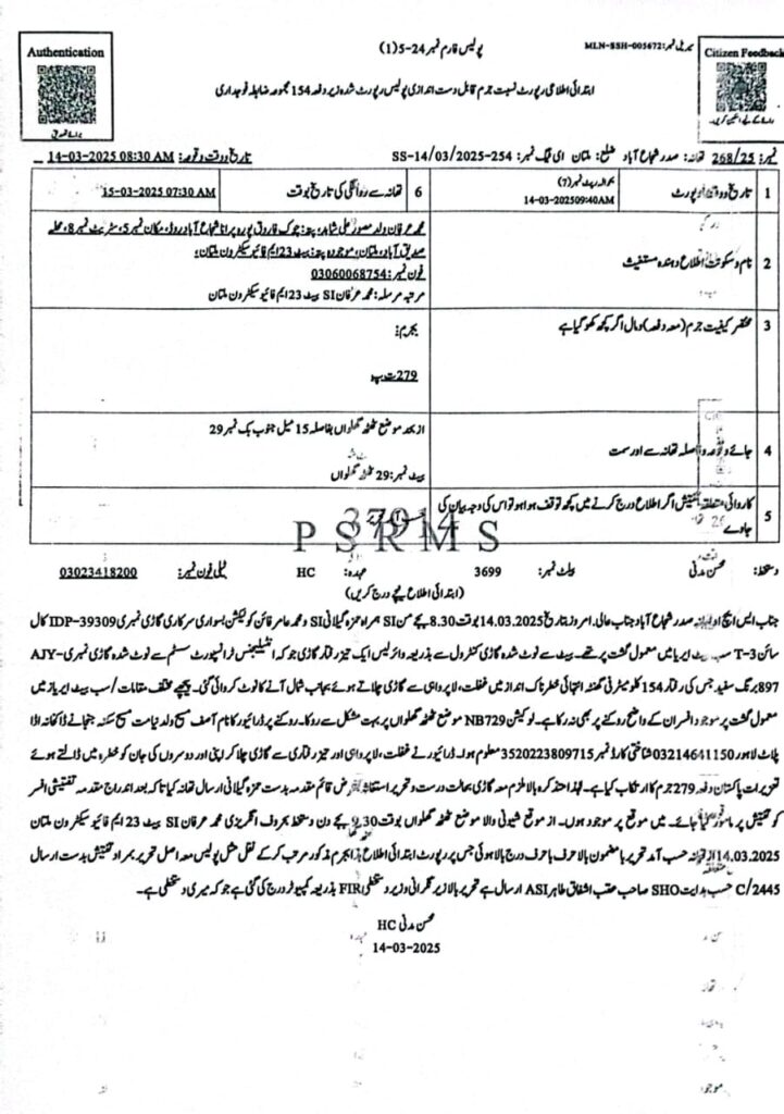جدید انٹیلی جینس سسٹم (ITS) کے ذریعے ان گاڑیوں کی نشاندہی کی گئی، جس کے بعد انسپکٹر عامر سردار اور ٹائیگر-3 کے افسران نے شجاع آباد انٹرچینج کے قریب ان گاڑیوں کو روک کر ڈرائیورز کو حراست میں لے لیا۔ گرفتار ڈرائیورز میں ایک کا تعلق لاہور جبکہ دوسرے کا گھوٹکی سے ہے۔