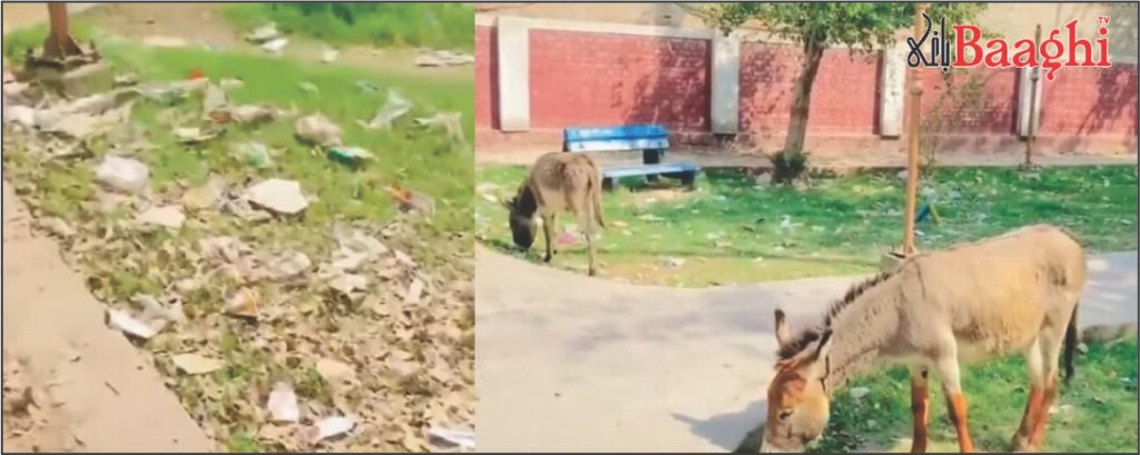 شہریوں کی شکایات کے مطابق، پارک کے گراسی گراؤنڈ میں قریبی مکینوں نے گدھوں کو باندھ دیا ہے، جو کھلے عام وہاں چرتے نظر آتے ہیں۔ اس کے علاوہ پارک میں گندے پانی کے جوہڑ اور کچرے کے ڈھیر بھی موجود ہیں، جس سے پارک کا ماحول انتہائی غیر صحت بخش ہو چکا ہے۔