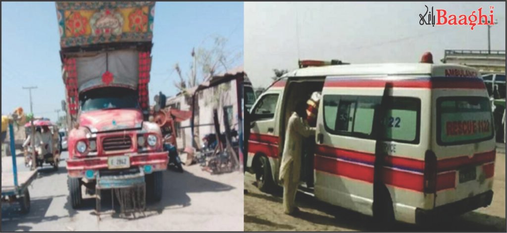 اوچ شریف (باغی ٹی وی نامہ نگار حبیب خان) اوچ شریف چوک بھٹہ روڈ پر حسن دریا دربار کے قریب ایک دلخراش حادثہ پیش آیا، جہاں ایک تیز رفتار ٹرک نے موٹر سائیکل سواروں کو ٹکر مار دی۔ اس افسوسناک واقعے میں دو افراد موقع پر ہی جاں بحق ہو گئے جبکہ ایک شخص زخمی ہوا۔