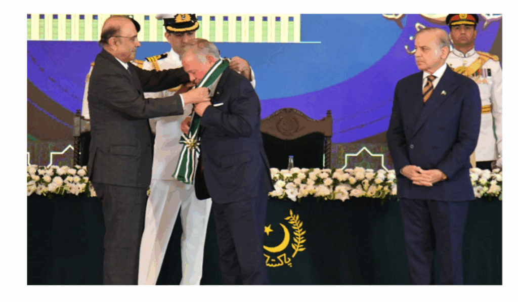 ایوان صدر اسلام آباد میں اردن کے شاہ عبداللہ دوئم کو اعلیٰ ترین سول ایوارڈ دینے کی تقریب ہوئی جس میں دونوں ملکوں کے قومی ترانے بجائے گئے۔ تقریب میں وزیر اعظم شہباز شریف، فیلڈ مارشل سید عاصم منیر، ائیر چیف مارشل ظہیر احمد بابر سدھو اور ایڈمرل نوید اشرف کی بھی نے شرکت کی،وفاقی کابینہ کے ارکان اور سفرا بھی اس موقع پر موجود تھے،صدرمملکت نے شاہ عبداللہ دوئم کو اعلیٰ ترین سول ایوارڈ نشان پاکستان دیا۔ شاہ عبداللہ دوئم کو اعزاز دوطرفہ تعلقات مضبوط بنانے، علاقائی اور عالمی امن کےلیےخدمات کےاعتراف میں دیاگیا،شاہِ عبداللہ دوئم نے صدرمملکت کواردن کے ایوارڈ’’وسامُ النّہضہ المرصّع‘‘سےنوازا، یہ ایوارڈ سربراہانِ مملکت اور معزز شخصیات کو دیاجاتا ہے،صدرمملکت کو دیاگیا اعزاز پاکستان کےساتھ اردن کی جانب سے گہرے احترام، تحسین اور دوستی کی علامت ہے۔