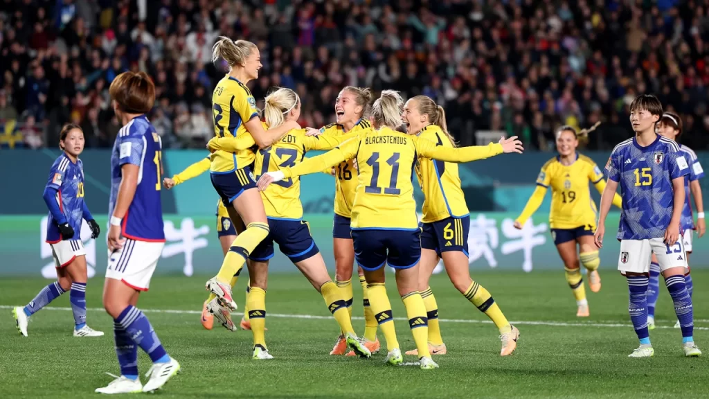 ویمنز ورلڈ کپ فٹ بال کے کوارٹر فائنل میں سوئیڈن نے جاپان کو ایک کے مقابلے میں دو گول سے شکست دے دی۔ فٹ بال کے چاہنے والے بڑی تعداد میں آکلینڈ کے ایڈن پارک میچ دیکھنے پہنچے، جاپانی شائقین اپنی ٹیم کی ہار پر افسردہ دکھائی دیے۔آکلینڈ کے ایڈن گارڈن میں جاپان اور سوئیڈن کے تماشائی بڑی تعداد میں میگا ایونٹ کا کوارٹر فائنل دیکھنے پہنچے، دونوں ٹیموں کے چاہنے والے مختلف انداز اور منفرد رنگ و روپ میں دکھائی دیے۔سوئیڈش تماشائیوں میں سے کسی نے اپنے ملک کا پرچم تھاما تو کوئی روایتی ہیٹ پہن کر اسٹیڈیم پہنچا جبکہ جاپانی شائقین میں بچے، بڑے اور خواتین سب شامل تھے۔میچ کے بعد فاتح ٹیم کے حامی خوشی خوشی اسٹیدیم سے نکلے جبکہ ہارنے والی ٹیم کے تماشائی جذبات پر قابو نہ رکھ پائے۔تاہم، سویڈن کی ایک تجربہ کار ٹیم ایک قدم بہت دور ثابت ہوئی اور جاپان کے خاتمے کا مطلب یہ ہے کہ مقابلہ کی پہلی بار فاتح ہوگی، جو خواتین کے کھیل کی حالیہ ترقی کا ایک اور اشارہ ہے۔ویمنز ورلڈ کپ کے سیمی فائنل میں سویڈن کا مقابلہ جمعہ کو جاپان کو سنسنی خیز مقابلے میں 2-1 سے شکست دینے کے بعد اسپین سے ہوگا۔