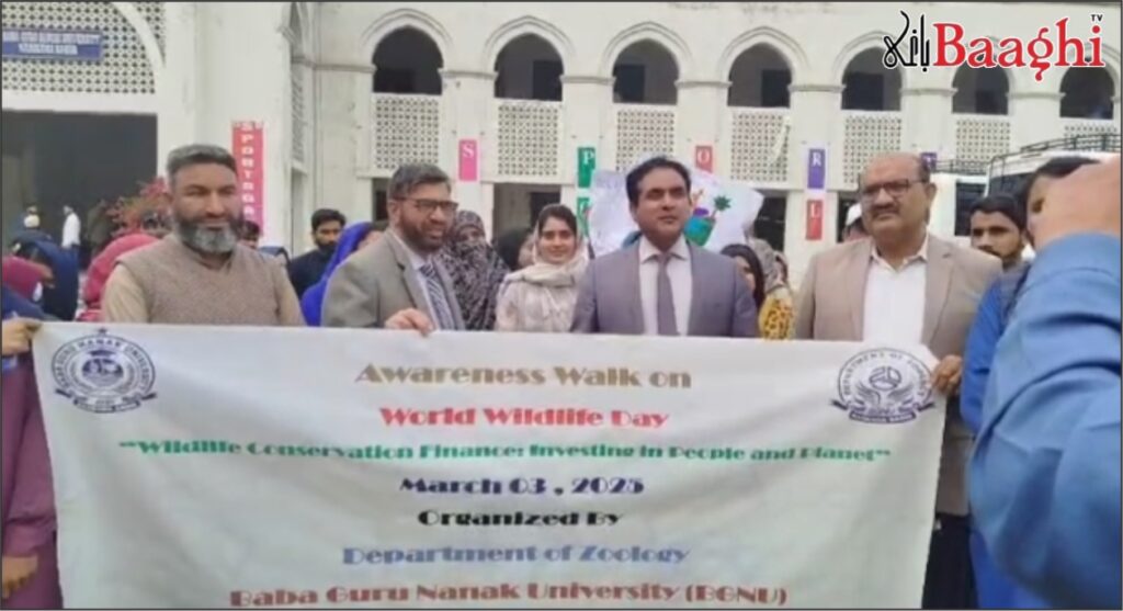 ننکانہ صاحب،باغی ٹی وی(نامہ نگاراحسان اللہ ایاز) بابا گورونانک یونیورسٹی ننکانہ صاحب کے شعبہ زولوجی نے آفس آف ریسرچ، انوویشن اینڈ کمرشلائزیشن (ORIC) کے اشتراک سے ورلڈ وائلڈ لائف ڈے 2025 کی مناسبت سے ایک روزہ سیمینار اور آگاہی واک کا اہتمام کیا۔ اس تقریب کا مقصد جنگلی حیات کے تحفظ کے بارے میں شعور اجاگر کرنا تھا۔