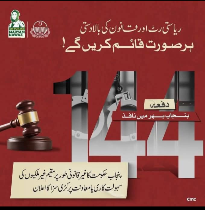 پنجاب میں دفعہ 144 میں توسیع، جلسے اور دھرنے بند رہیں گے